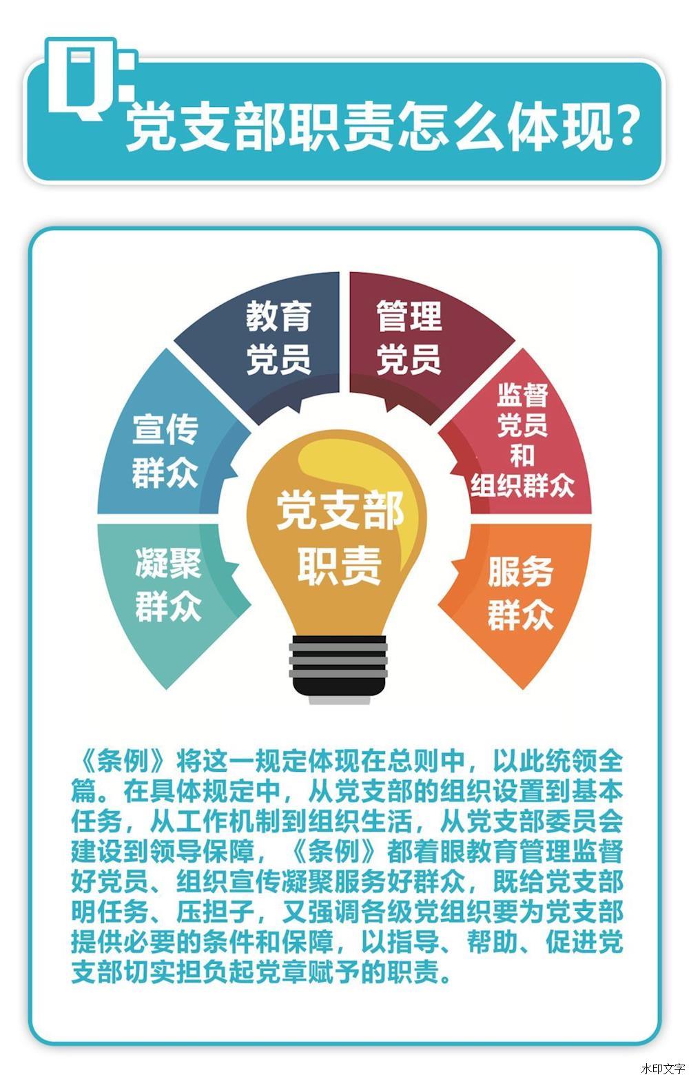 第二條 黨支部是黨的基礎(chǔ)組織,是黨組織開展工作的基本單元,是黨在社會基層組織中的戰(zhàn)斗堡壘,是黨的全部工作和戰(zhàn)斗力的基礎(chǔ),擔(dān)負直接教育黨員、管理黨員、監(jiān)督黨員和組織群眾、宣傳群眾、凝聚群眾、服務(wù)群眾的職責(zé)。