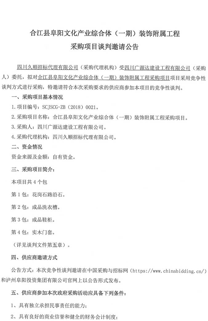 合江縣阜陽文化產(chǎn)業(yè)綜合體(一期)裝飾附屬工程采購項(xiàng)目談判邀請(qǐng)公告.doc