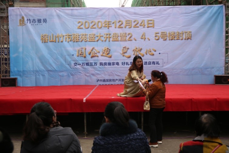 2020年12月24日上午,鑫晟地產(chǎn)公司在竹市雅苑售房部現(xiàn)場(chǎng)隆重舉行項(xiàng)目開盤暨2、4、5號(hào)樓封頂活動(dòng)。豐富多彩的節(jié)目表演、精彩有趣的有獎(jiǎng)問答吸引了周邊群眾觀看、參與。 此次活動(dòng)達(dá)到了很好的宣傳造勢(shì)效果,使“國(guó)企造,更放心”深入人心。