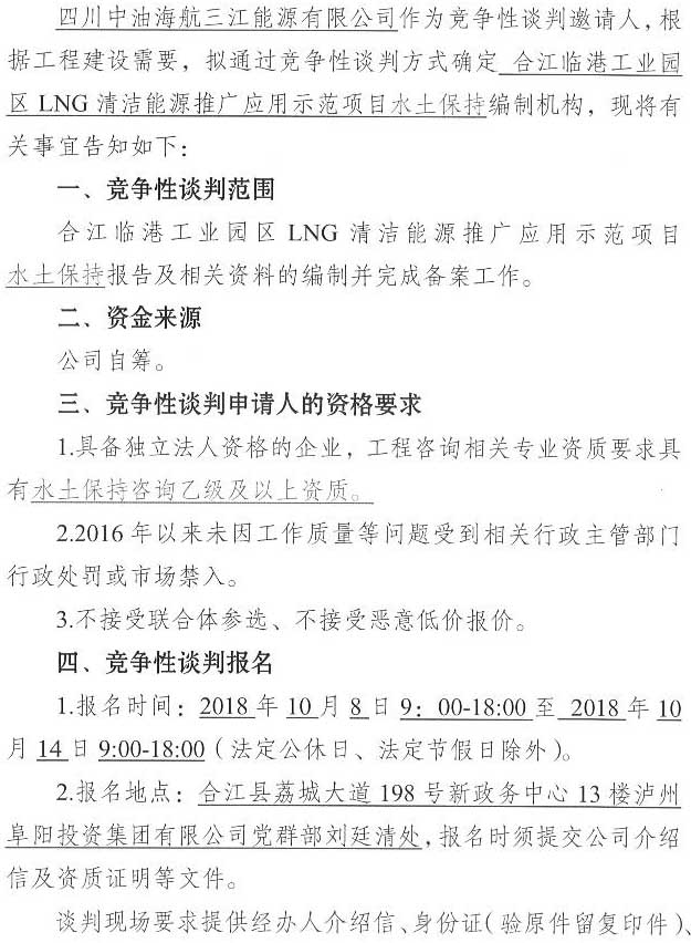 合江臨港工業(yè)園區(qū)LNG清潔能源推廣應(yīng)用示范項(xiàng)目水土保持報(bào)告單位競(jìng)爭(zhēng)性談判公告.docx