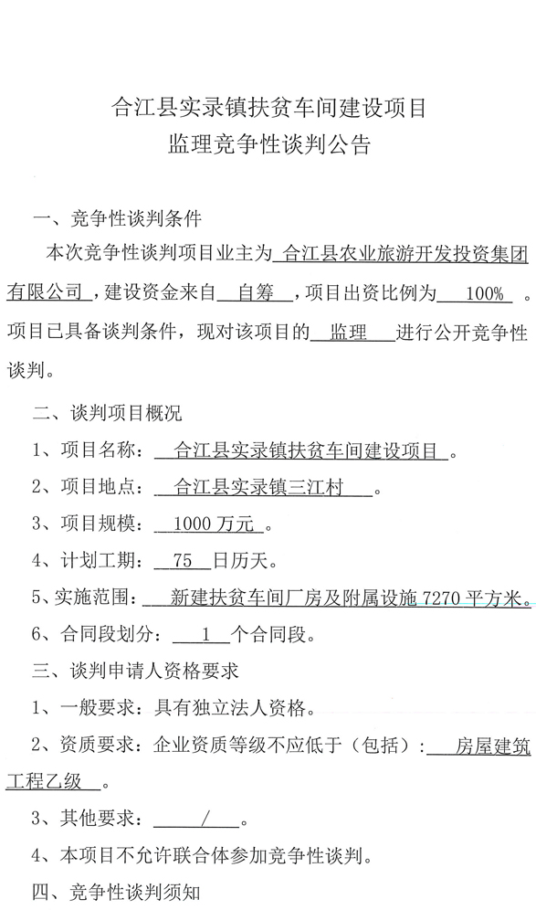 合江縣實錄鎮(zhèn)扶貧車間建設項目監(jiān)理競爭性談判公告.docx