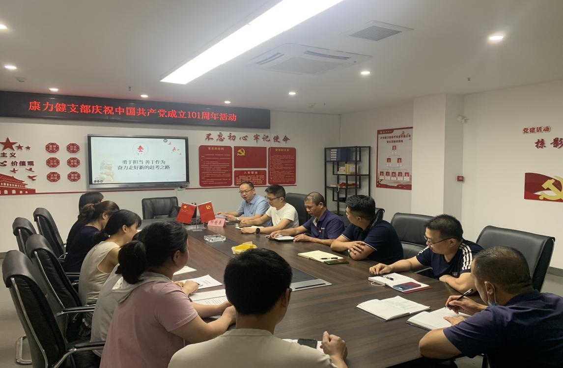 為慶祝中國共產(chǎn)黨建黨 101 周年, 7 月 1 日, 康力健黨支部開展 “七一” 主題黨日活動, 通過唱紅歌、 重溫入黨誓詞、 支部書記講黨 課等多種形式, 教育引導(dǎo)黨員干部不忘初心, 知行合一, 以實(shí)際行動 迎接黨的二十大勝利召開。