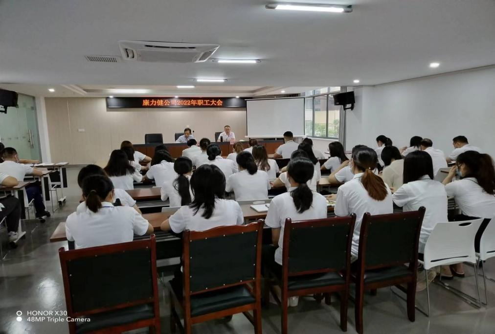 2022 年 6 月 27 日上午,瀘州康力健醫(yī)療投資有限公司 在 公 司 大 會 議 室 舉 行 2022 年 職 工 大 會 。 公 司 董 事 長 胡 天 華 、 總經(jīng)理鄭世來出席了大會, 并在大會上發(fā)表重要講話。 本次 大會分為上半年工作總結(jié)、 下半年工作計劃及安全生產(chǎn)會議 三個部分, 旨在總結(jié)公司上半年的發(fā)展情況, 完善下半年的 發(fā)展計劃及 “ 對標找差、提能增效 ” 活動開展情況,鄭世來總 經(jīng)理提出 : 一是要理清業(yè)務工作思路,對目標任務高標準嚴 要求的貫徹執(zhí)行;二是要強化落實 “ 兩個責任 ” ,抓好黨的建 設和企業(yè)管理。 將組織相關(guān)人員不定期對公司各崗位履職情 況進行檢查監(jiān)督, 發(fā)現(xiàn)問題, 立即指出督促整改到位, 建立 健全各項規(guī)章制度, 以制度管人, 推動公司各職能部門履職 盡責, 提升公司盈利能力和盈利水平, 并對廉潔從業(yè)及安全 生產(chǎn)管理制度進行了的宣講。